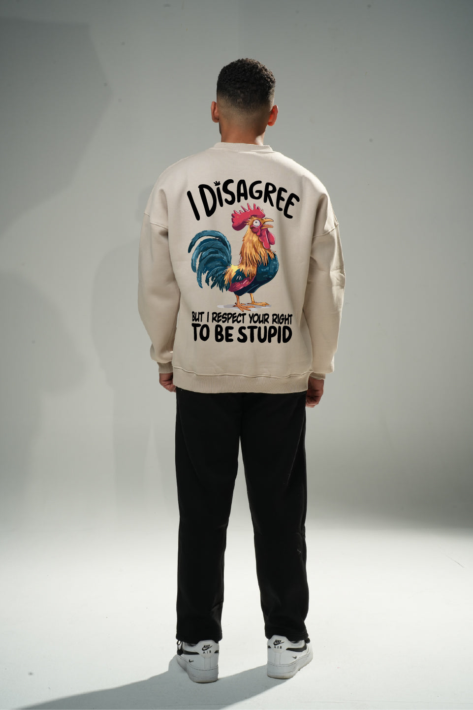 Beige "Disagree" Oversize Crew Neck Sweeter
