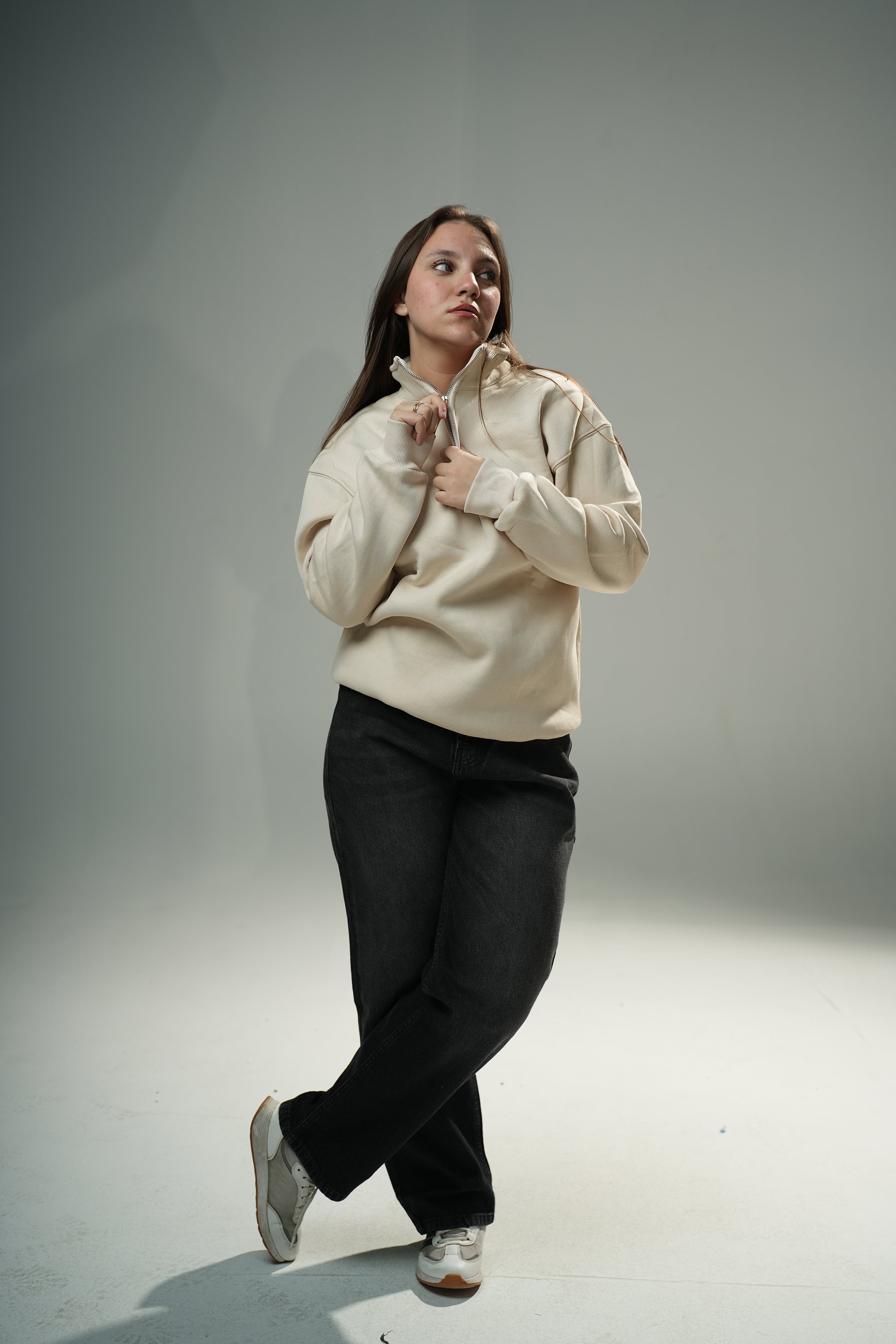 Beige Quarter-zip sweater