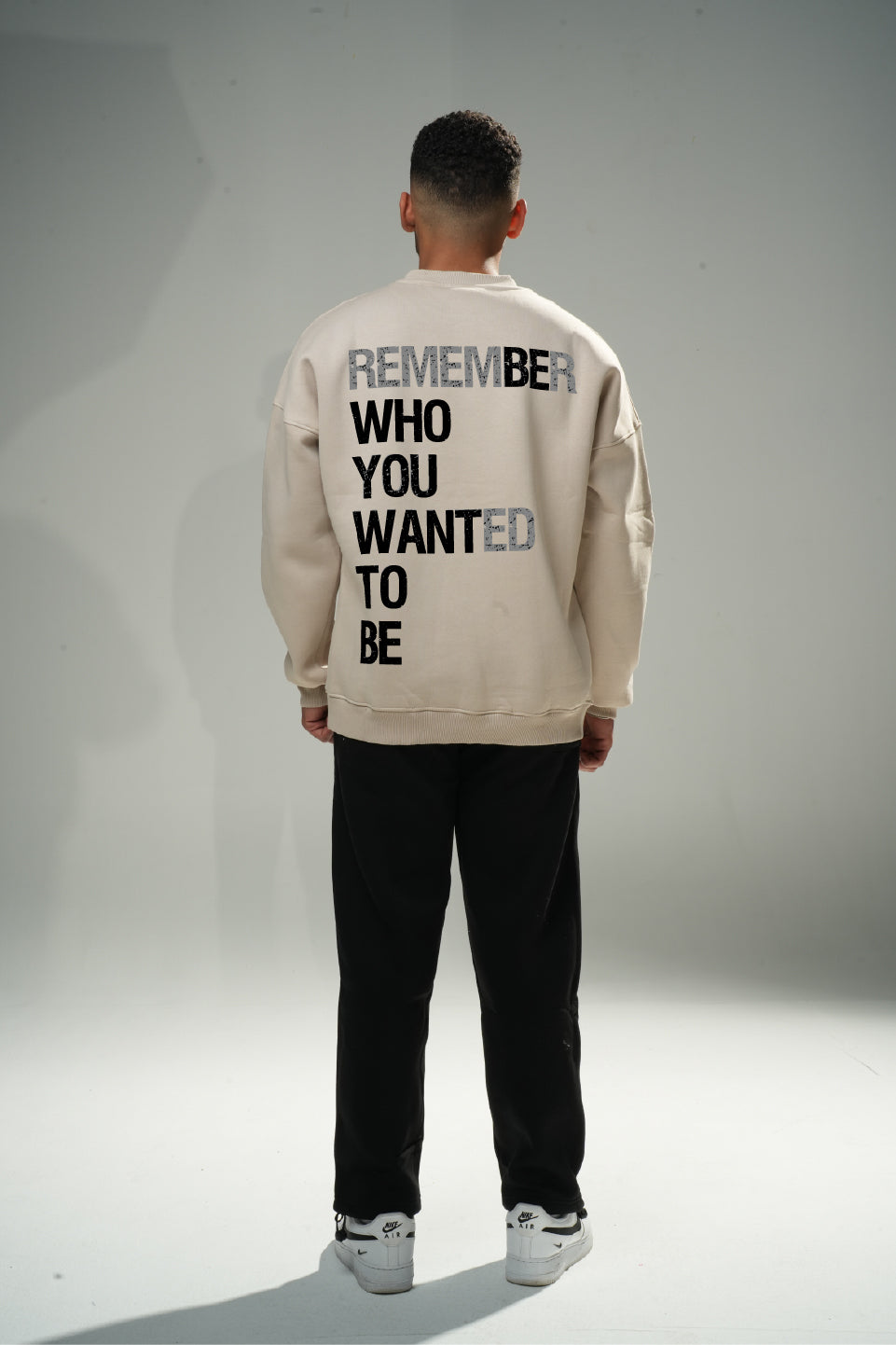 • Beige "Remember" Oversize Crew Neck Sweeter