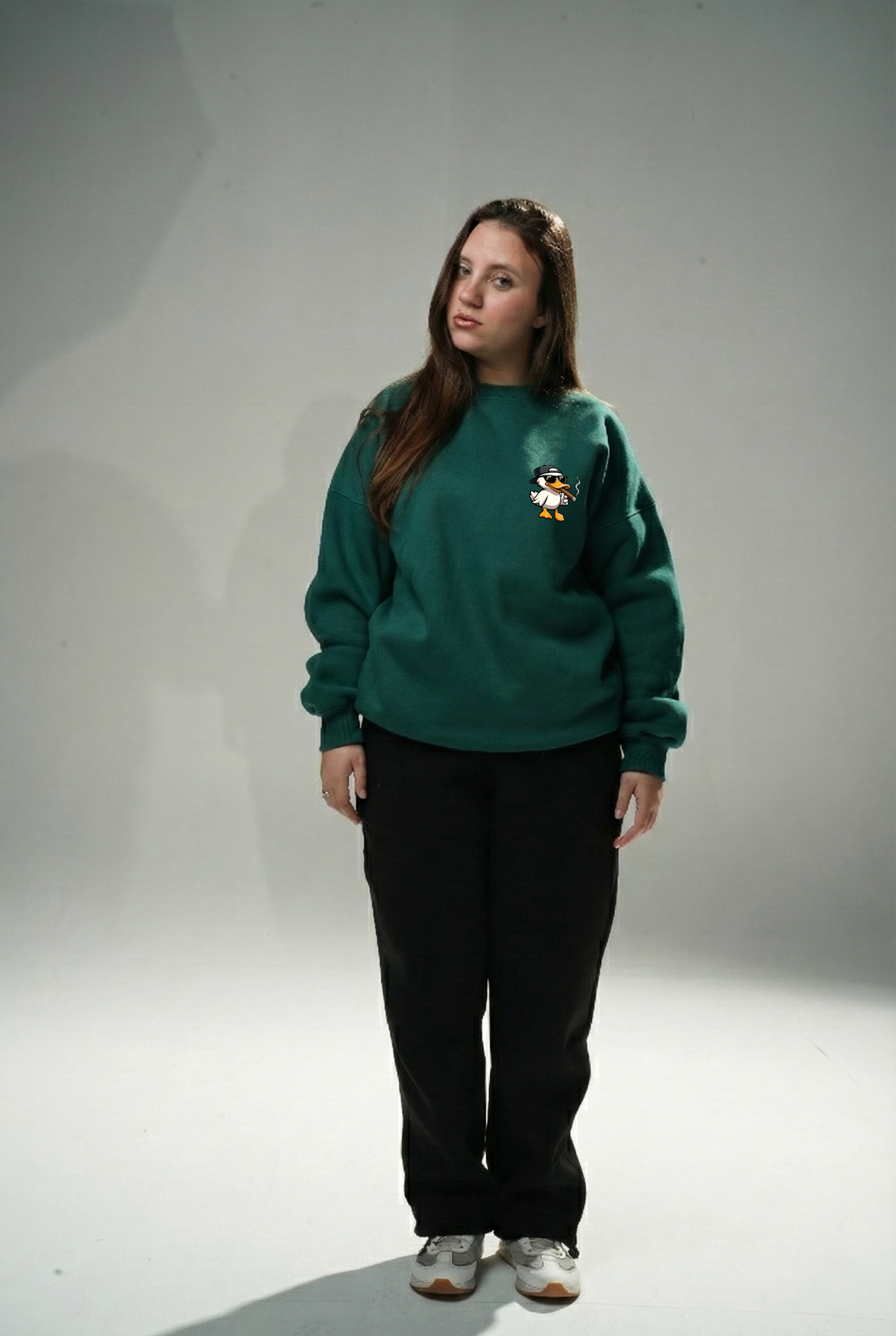 • Dark Green "Duck OFF" Oversize Crew Neck Sweeter