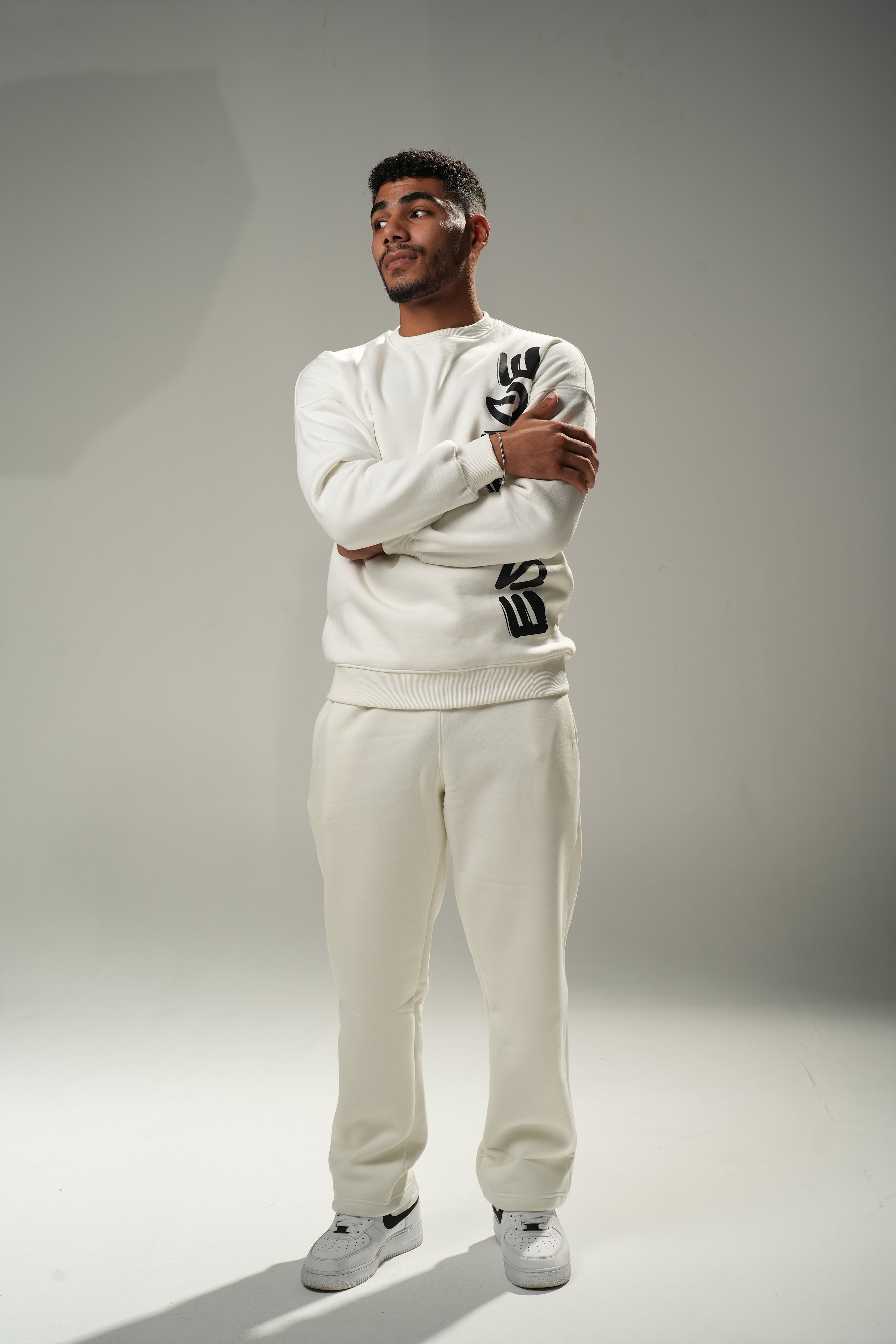 Upgrade your everyday style with our premium Essence Oversized Crewneck Sweatshirt. Designed for comfort and bold streetwear attitude, this piece features a clean off-white base with a striking vertical ESSENCE logo print that adds a powerful, modern edge to your look.